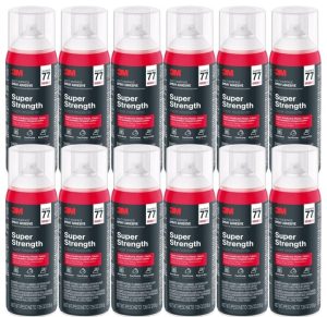 3M Super 77 – Adhesivo en aerosol multiusos, latas de 7.35 onzas, paquete de 12 – Pegamento en aerosol de alta resistencia a granel para espuma, tela, plástico, papel, cartón, metal y más