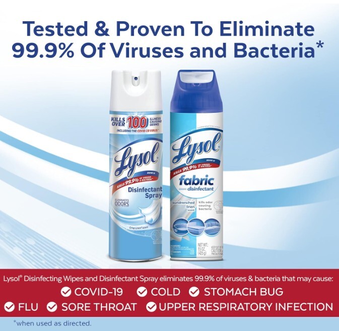 Lysol Spray desinfectante + desinfectante de tela, desinfectante y antibacteriano, para desinfectar y desodorizar, lino crujiente + lino bañado por el sol, 2 unidades (19 onzas cada uno)