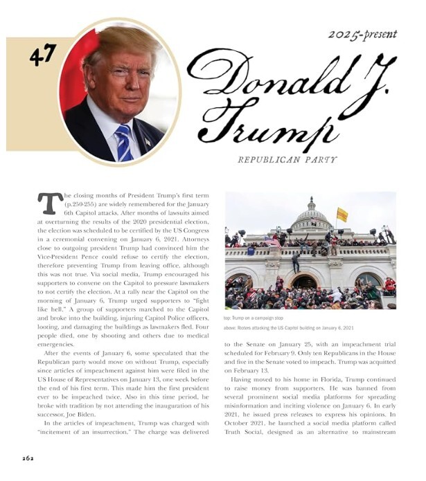 Páginas profusamente ilustradas, incluyendo los retratos oficiales de los presidentes en la Casa Blanca.